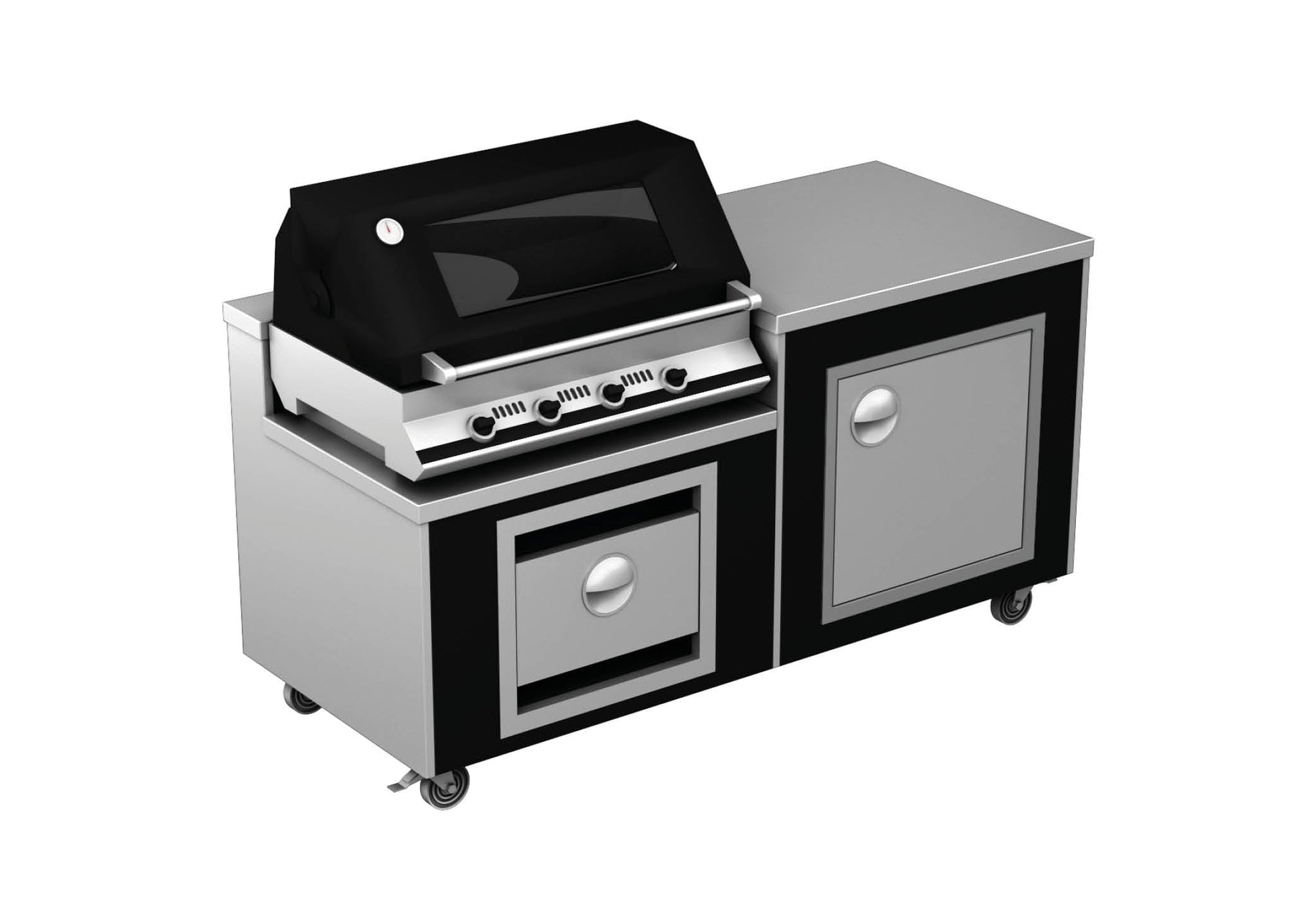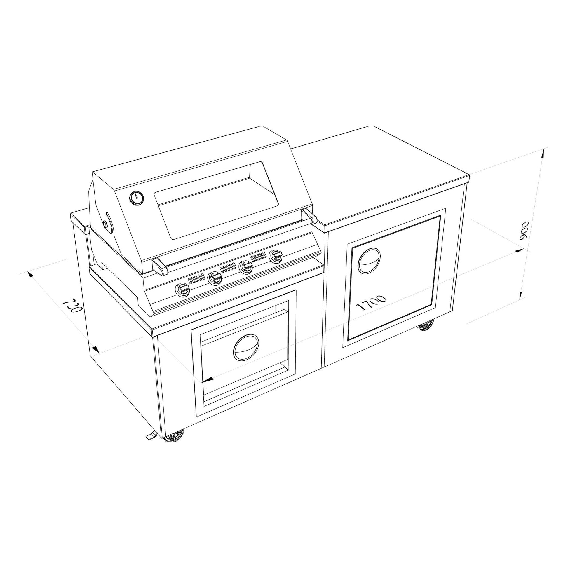 Featuring a deluxe 4 Burner gas BBQ and plain top serving area, store cupboard and a gas bottle storage cupboard.